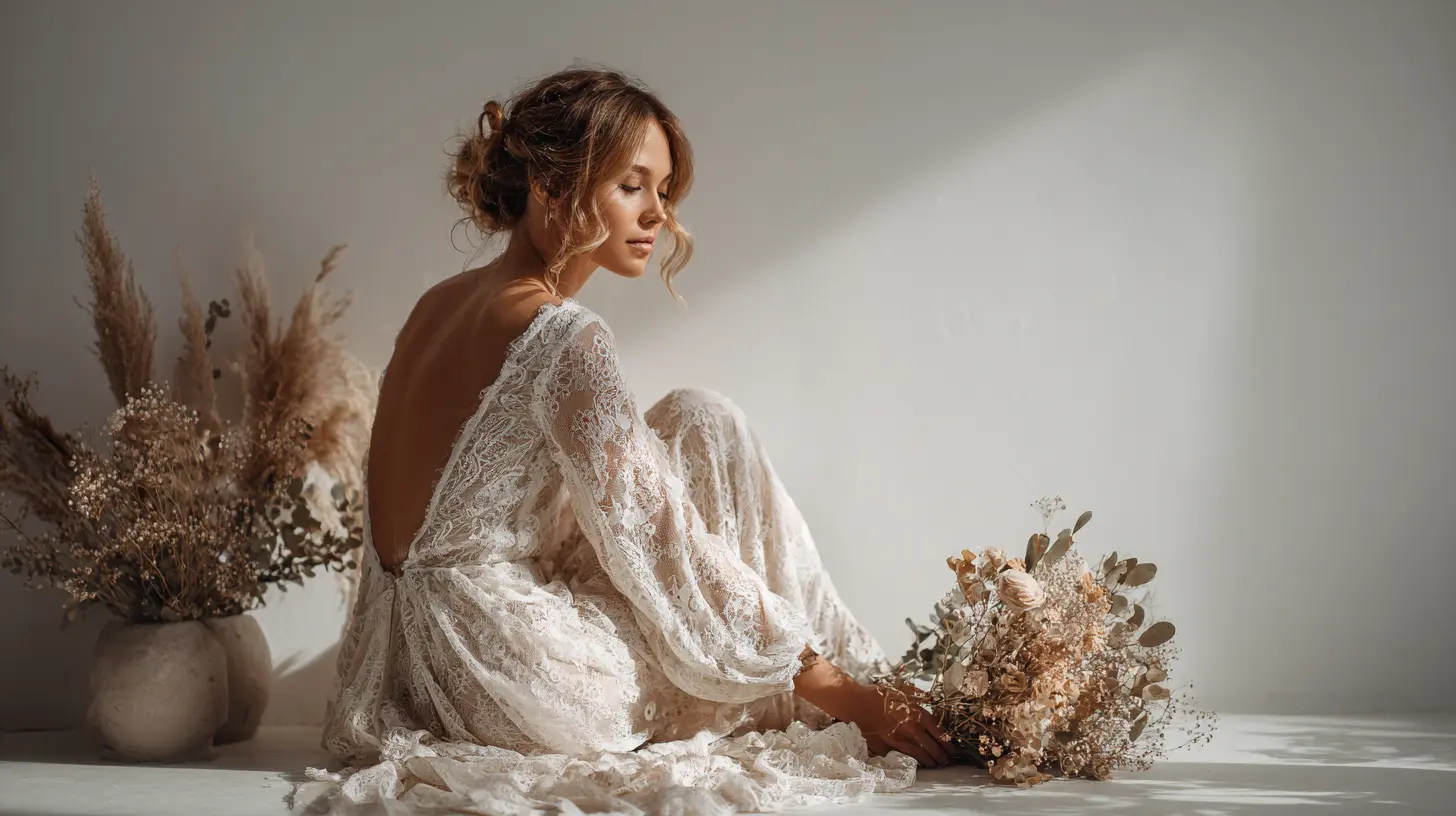 Le style bohème continue de séduire avec ses dentelles délicates, ses dos nus romantiques et ses manches vaporeuses. Mais il se modernise avec des touches minimalistes et des lignes épurées. Le mix and match s'invite également dans la garde-robe nuptiale : pourquoi ne pas porter une jupe volumineuse avec un top moderne, ou accessoiriser une robe simple avec une veste en cuir pour les photos ?