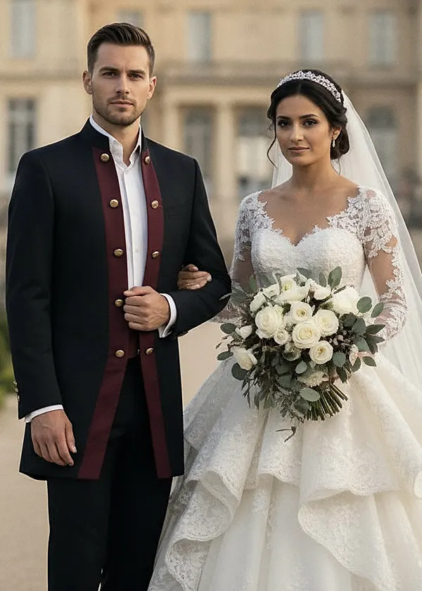 Avec The French Tailor, vous avez la liberté de composer vous-même votre tenue de mariage. Choisissez le tissu qui vous inspire, la doublure qui ajoutera cette touche d'originalité, les boutons qui apporteront du caractère, et même les boutonnières qui feront toute la différence. C'est cette personnalisation qui transforme un simple costume en une pièce unique, pensée pour vous et pour votre grand jour. Et une fois que votre costume est prêt, il ne vous reste plus qu'à ajouter les accessoires qui parachèveront votre look : de belles chaussures élégantes, une ceinture raffinée, un nœud papillon ou une cravate qui viendra signer votre allure avec panache.